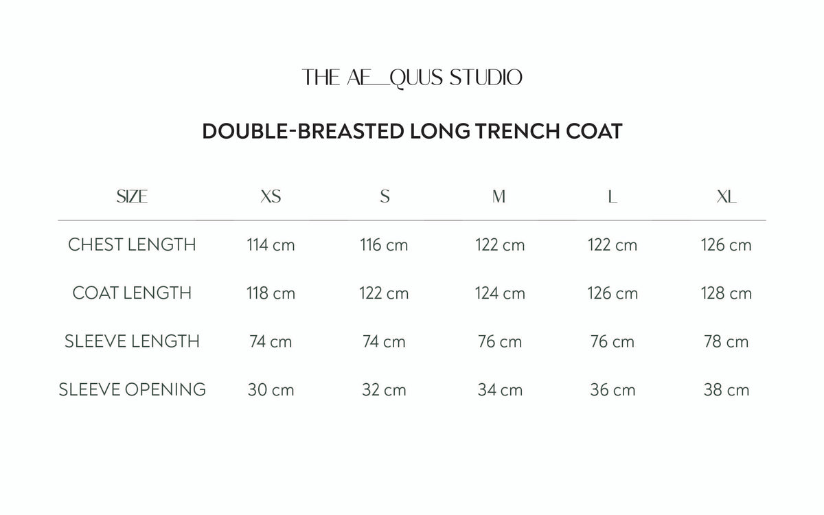 Commanding yet effortless, this Double Breasted Long Trench Coat is tailored with clean lines and a statuesque drape. Refined detailing and a soft yet structured finish make it a timeless statement piece; blending sophistication, strength, and modern ease.