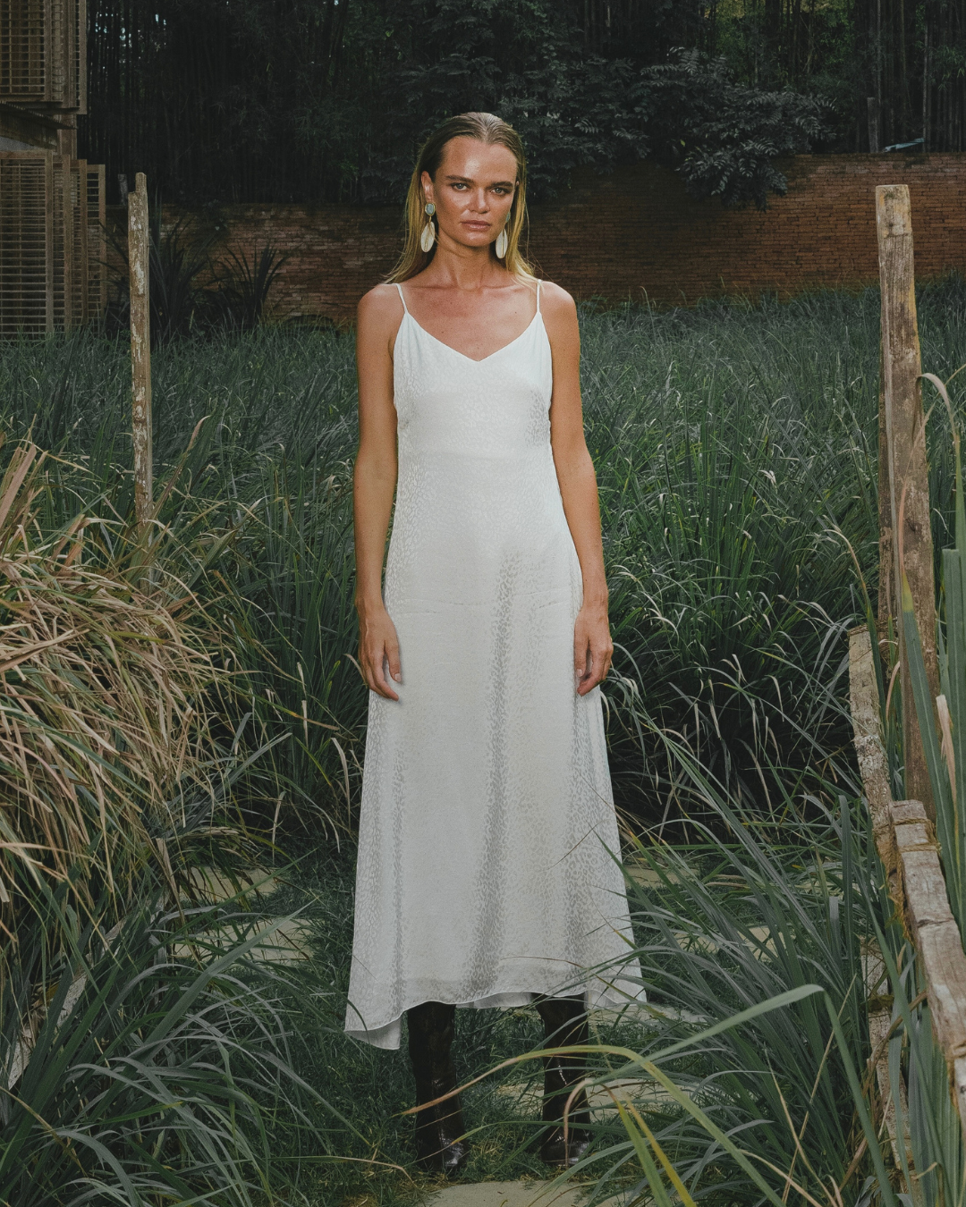 A timeless slip dress in luxurious viscose with a delicate leopard pattern, Panthera exudes understated sophistication and fluid movement.